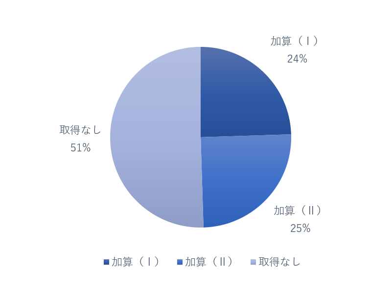 介護職員等特定処遇改善加算を取得している事業所は加算(Ⅰ)・加算(Ⅱ)の合算で49%あります。