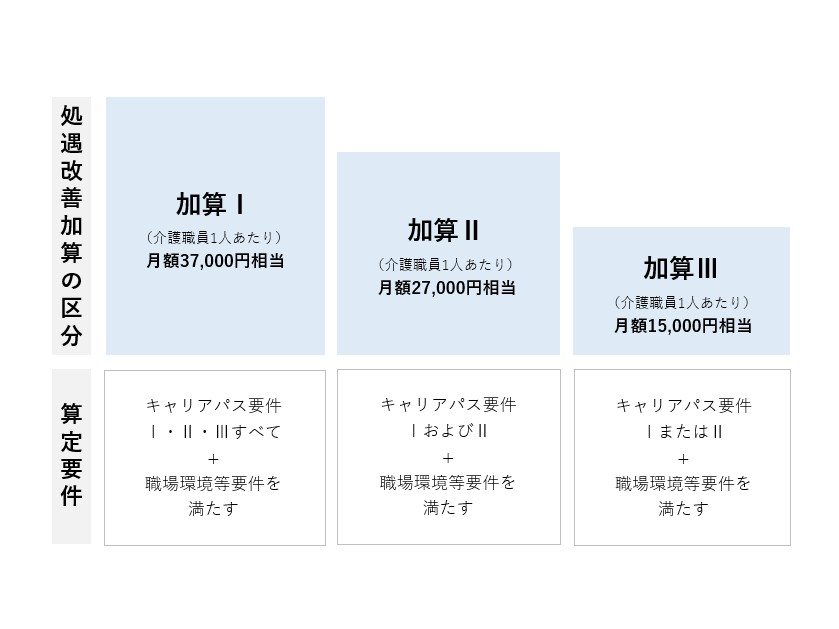 • 現行の介護職員処遇改善加算(Ⅰ)から(Ⅲ)までを取得していること